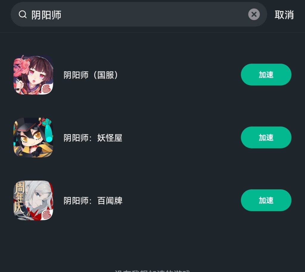 之后在手机端游戏库内搜索阴阳师,然后点击加速,就可以正常解决在海外玩国服的网络问题