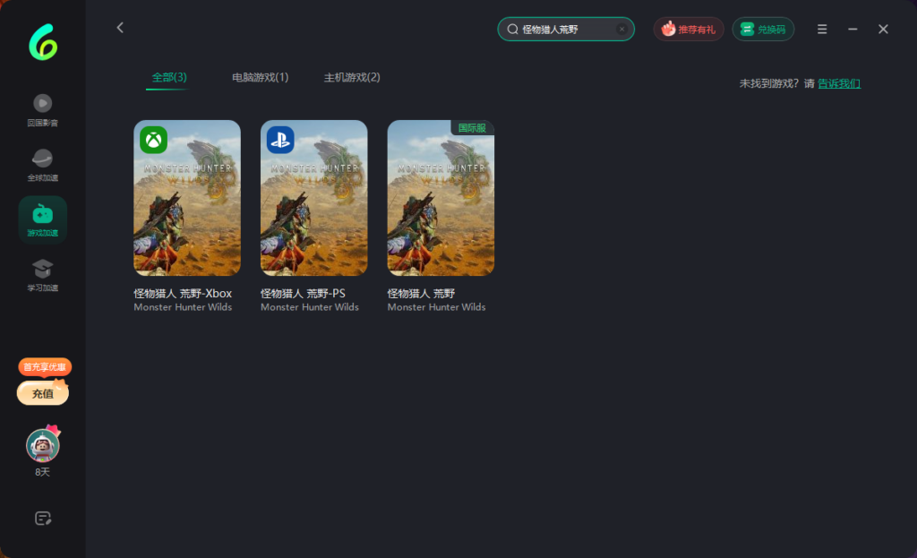 兑换完成之后搜索怪物猎人荒野点击加速即可!