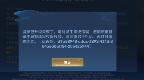 很多海外的朋友在玩国服王者荣耀的时候遇到:王者更新后还是进不去,也重启过,游戏显示资源包升级失败发生系统错误。