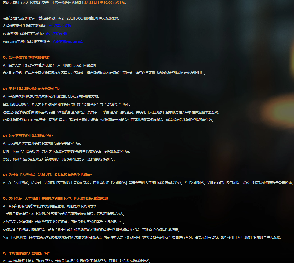 - 测试目的:聚焦异人技能、身外身效果、竞技玩法等竞技核心的平衡性调整,收集玩家反馈以新增异人或调整已有异人技能效果,优化游戏平衡性,为正式服上线做准备。