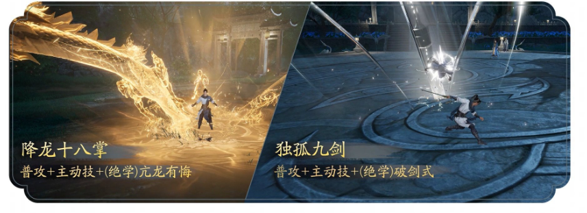 - 武学系统革新:在全面重制 1.0 每一招武学的基础上,全新打造了近百招新武学,其中不乏大家耳熟能详的降龙十八掌、打狗棒法、独孤九剑等传世经典。游戏邀请专业知名动捕演员演绎武术招式,出招干脆利落,力道刚柔并济,武学的韵味自然流露。此外,PVP 玩法也进行了彻底重制,不再是数值的碾压,而是回归到武学招式的本源,玩家可以凭借自身对武学的理解,在自由武学的支持下,通过策略与操作进行武侠博弈。