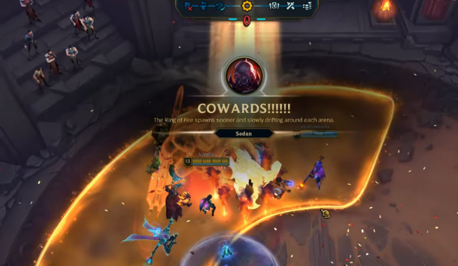 -赛恩:火焰之环提前15秒生成,随后火焰之环快速收缩,同时在每个竞技场中缓慢漂移。第八回合。15.5版本。