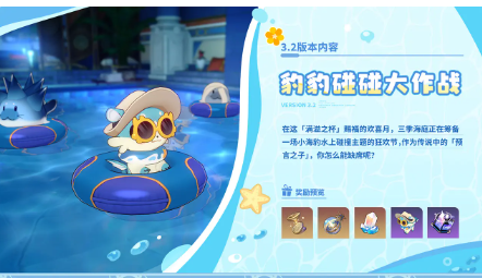 在这「满溢之杯」赐福的欢喜月,三季海庭正在筹备一场小海豹水上碰撞主题的狂欢节,作为传说中的「预言之子」,你怎么能缺席呢?
