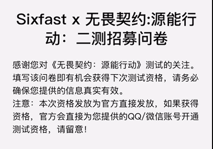 现在sixfast合作调查问卷已上线,填写即可获取测试资格。