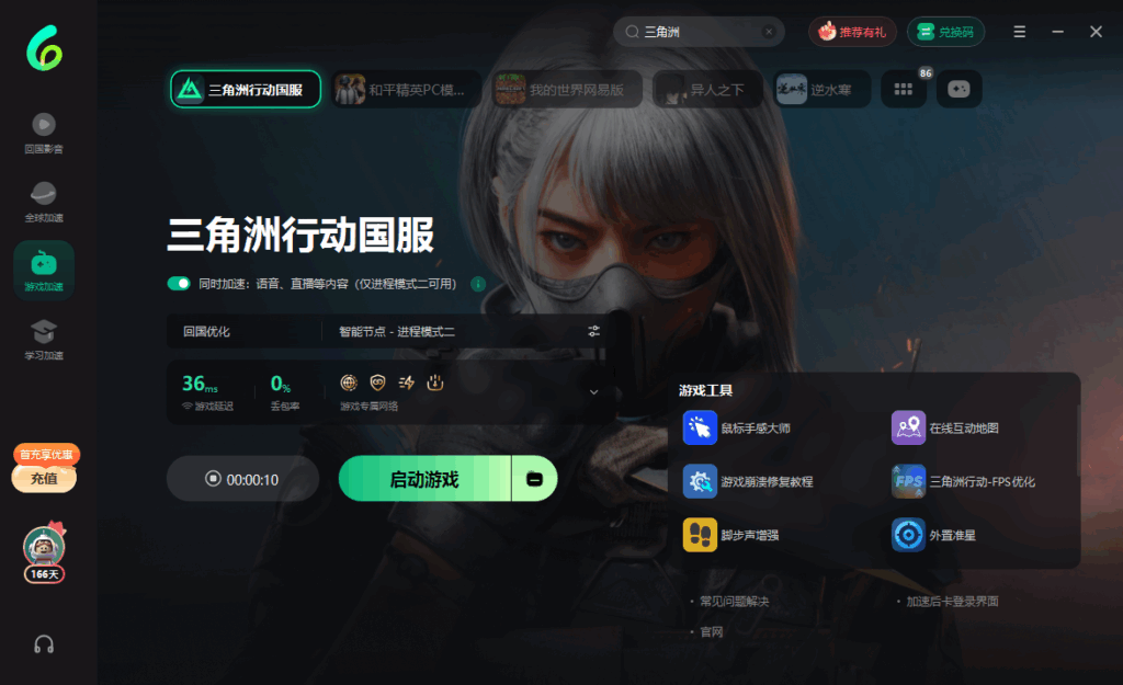 之后再游戏库内搜索三角洲行动,然后点击加速,就可以正常解决在海外玩国服的网络问题