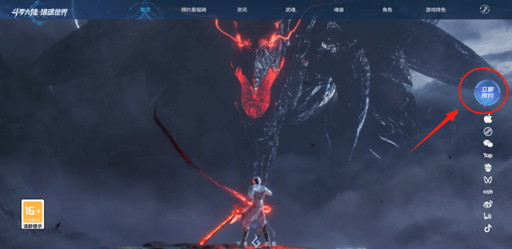 1.进入官网首页:《斗罗大陆:猎魂世界》手游官网;右边有个立即预约