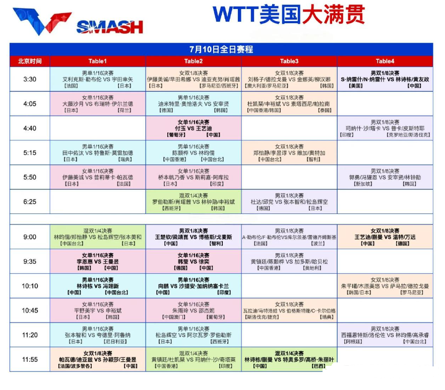 WTT美国大满贯7月10日赛程!海外怎么观看WTT中文直播?