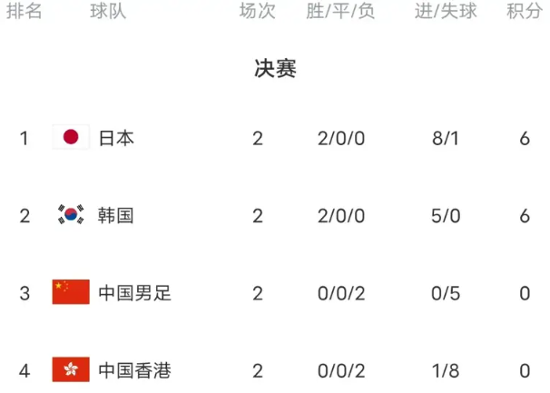 - 最后一轮将是日本和韩国的冠军争夺战,而国足和中国香港则将为第三名展开较量。国足面临的压力也不小,毕竟中国香港同样不好对付。