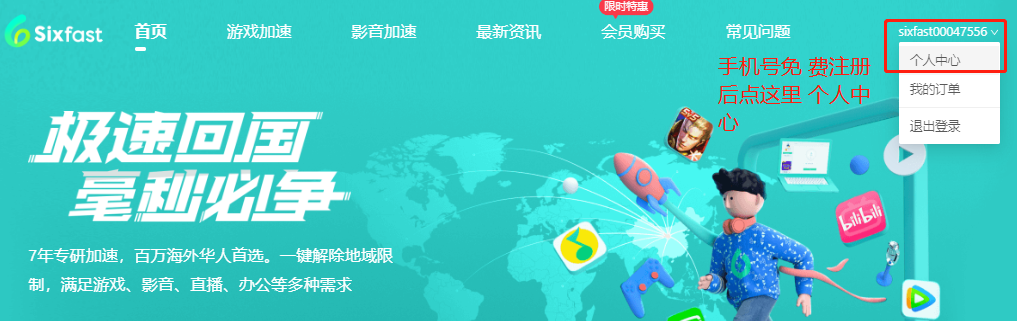 如果你还没有使用过这个工具的伙伴,可以在Sixfast官网(https://www.sixfast.com/)内,注册一个账号,注册后在个人中心-兑换码处填 six4,领取三天免费加速会员体验哦。