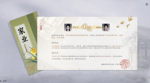 同住期间,主经营者的家业为核心,其他人的家业进度会保留,解除同住后,所有进度可带回自己的家业。
