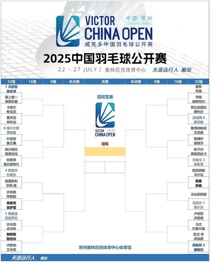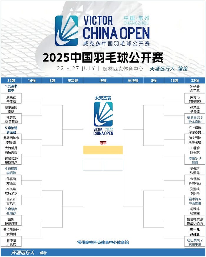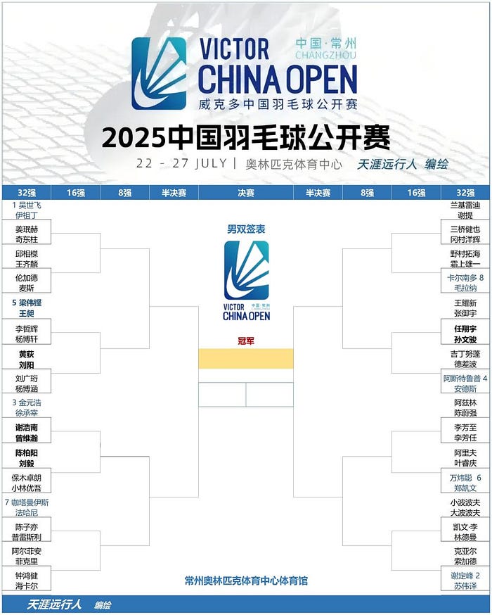2025中国羽毛球公开赛最新完整签表+国羽参赛阵容