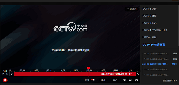 由于各个地区和国家的服务商不同,各地的区域调整不同,国内正常播放的女篮亚洲杯正赛和热身赛放等其他赛事的中文流直播在部分地区没有办法正常观看。在海外地区使用国内平台的时候收看直播的时候会出现如下图中显示“您所在的地区 暂不支持的”的问题.