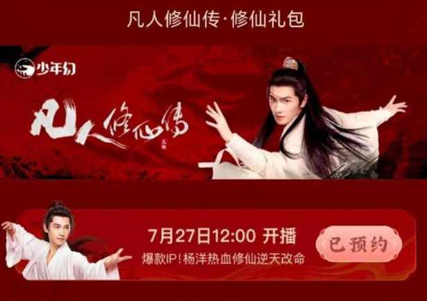 1.7月22日,《凡人修仙传》可预约,内容显示,该剧7月27日中午12:00开播。