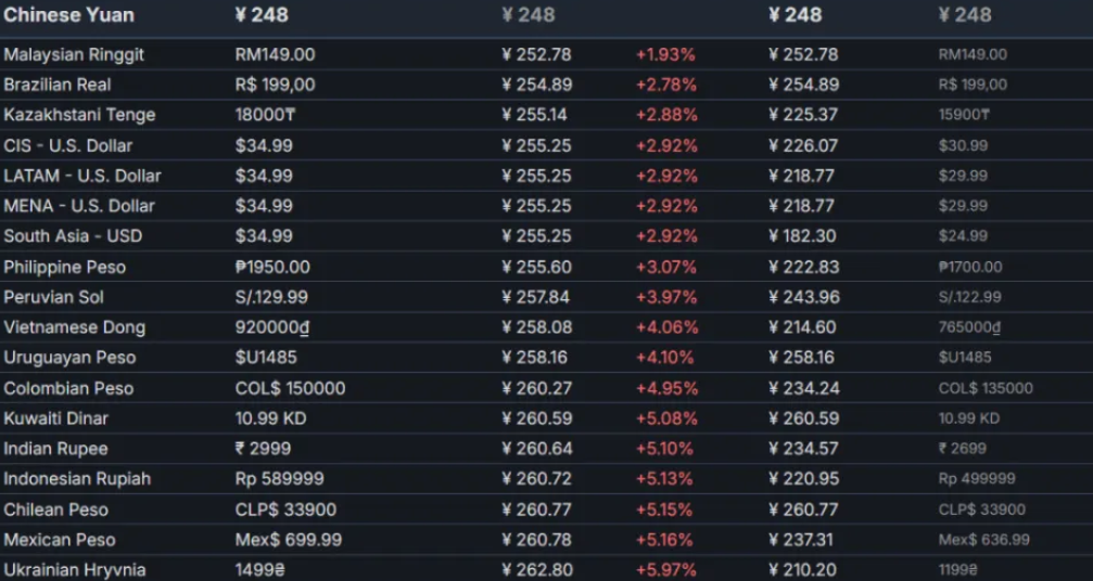 《明末:渊虚之羽》在Steam商店国区的价格为所有地区最低,且多个地区的价格相较此前有所上涨,涨幅百分比各有不同。
