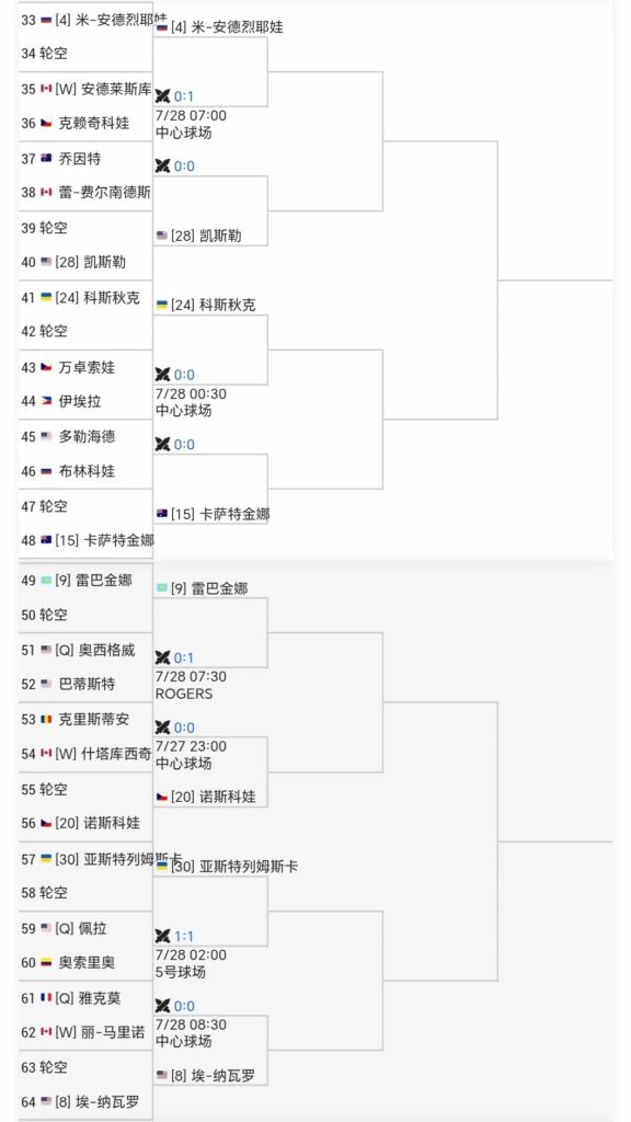 - WTA1000蒙特利尔站女单正赛签表赛程公布
