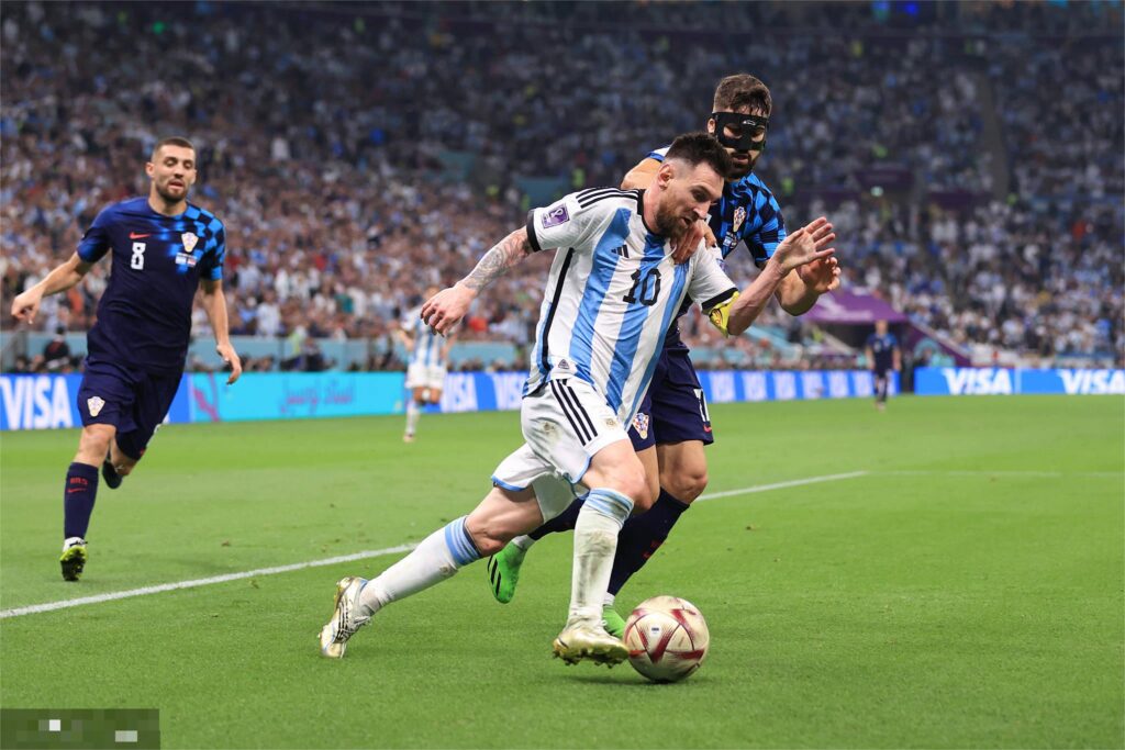 第31分钟,科瓦契奇分球,佩里西奇内切吊射高出。这个球本来打在阿根廷球员身上有一个折射,应该是克罗地亚角球,但裁判判给阿根廷门球。紧接着,恩佐·费尔南德斯过顶球,阿根廷9号前锋胡利安·阿尔瓦雷斯快速突入禁区,挑过门将利瓦科维奇之后被撞倒,意大利主裁奥尔萨托果断判罚点球,利瓦科维奇和提出抗议的科瓦契奇吃到黄牌。梅西势大力沉的射门命中右上角,1:0!