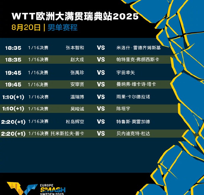 WTT欧洲大满贯8月20日完整赛程!海外如何观看WTT欧洲大满贯中文解说直播?