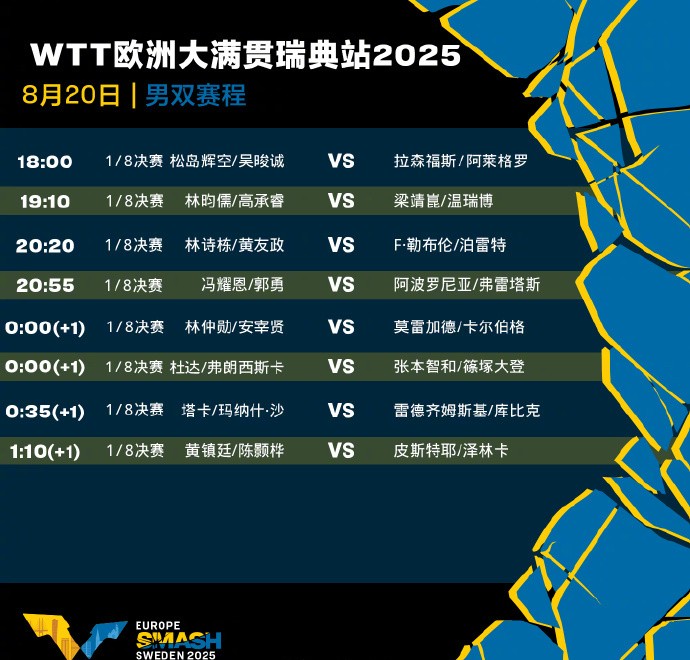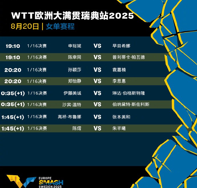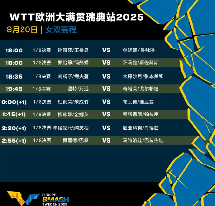 一、2025WTT欧洲大满贯瑞典站赛程:孙颖莎王曼昱联手出战女双!