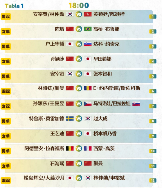今天的瑞典大满贯同样很精彩,中国队的比赛有: