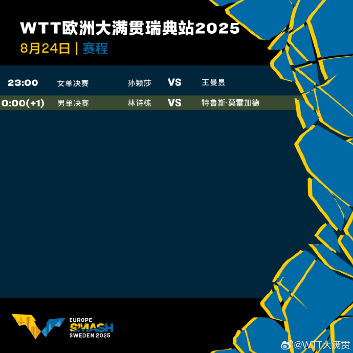 - WTT 欧洲大满贯瑞典站 8月24日完整赛程
