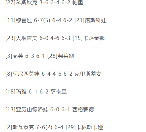 2025美国网球公开赛女单第三轮全部结束,斯瓦泰克、高芙、阿尼西莫娃、大坂直美、穆霍娃、科斯秋克、玛雅、亚历山德洛娃八位种子选手全部获胜晋级十六强。至此,美网1/8决赛对阵全部出炉,上半区黑马众多,下半区种子大战。