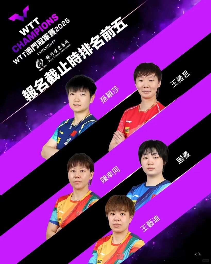 2025 年 WTT 澳门冠军赛将于 9 月 9 日至 14 日在澳门东亚运动会体育馆举行,看点十足。