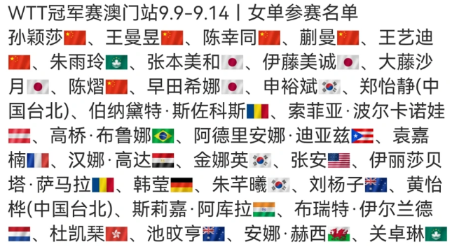 北京时间8月26日,随着东道主外卡和WTT提名名单的发放,WTT澳门冠军赛完整名单正式出炉。国乒小将黄友政获得WTT提名名单,也如愿获得澳门冠军赛参赛名单。这样国乒参赛名单变为男女各6人,共12人获得参赛资格
