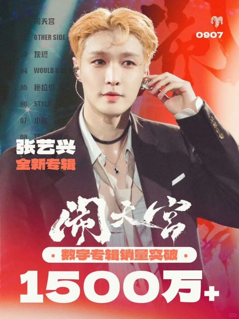 张艺兴的新专辑《闹天宫》大家都听了吗?而且自发售以来《闹天宫》全平台销量达成1500万!