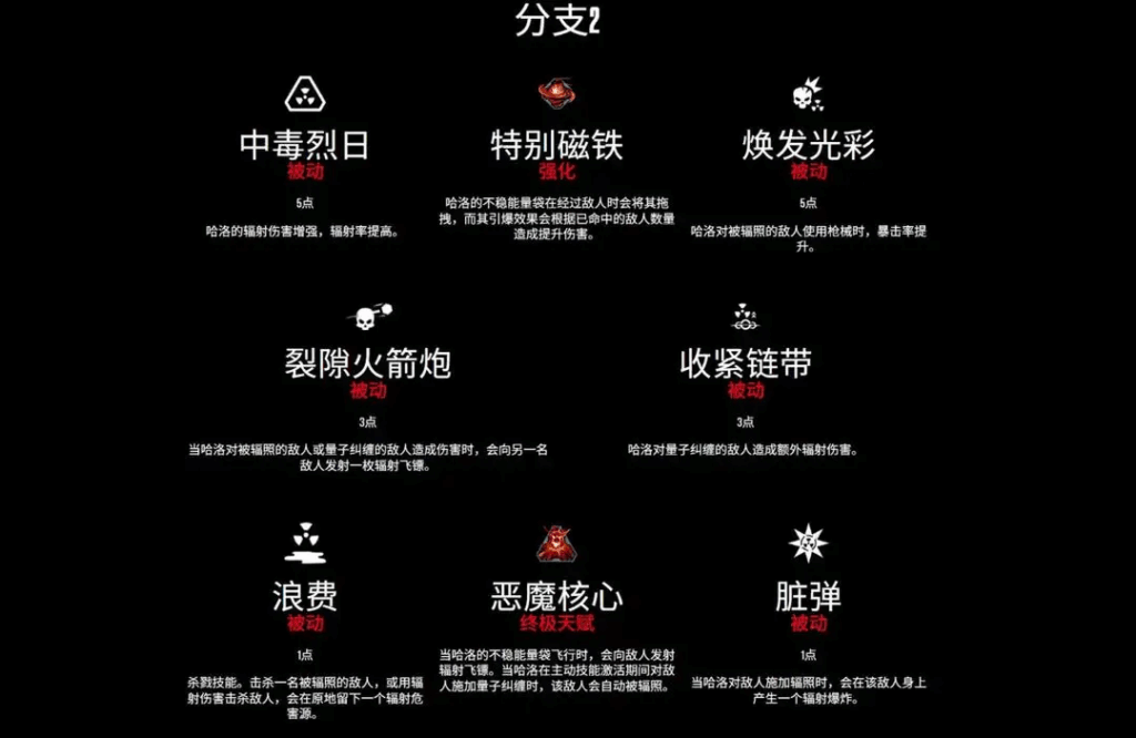 哈洛的【创意爆发】技能树和【铬合金加速器】造成辐射以及冰冻伤害,这就十分利于队友发挥优势,为被辐射的敌人会伤害附近其他敌人,且在被击杀时会发生爆炸,造成范围性的额外辐射伤害。很适合清理大片的聚集性敌人。