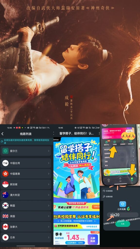 兑换完之后,下方切换模式,切换到【回国影音模式】进行加速