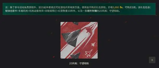 上述这些充满情怀的配件获取方式也很简单,就是按照官方发布的任务顺序逐步完成即可。如果你想尽快拿到它们,甚至还可以直接花3K金币直购,还能额外拿一款非常酷炫,有六代机元素的2D涂装“守望相助”。
