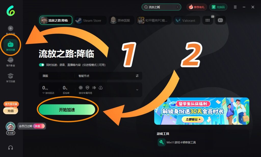 解决海外玩流放之路降临延迟高、卡顿、登录不上等问题: