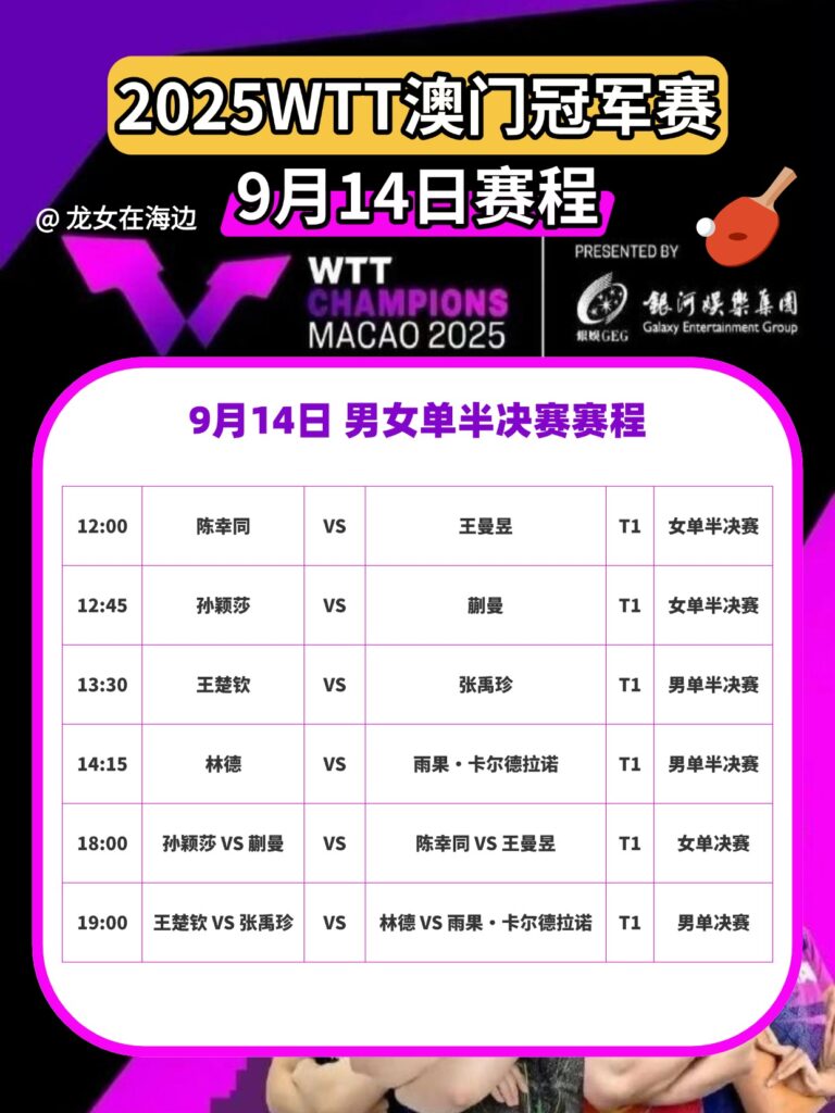 2025WTT澳门冠军赛9.14完整赛程!海外看不了WTT赛事直播?