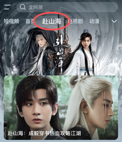 - 在搜索框输入《赴山海》,找到并点击观看。