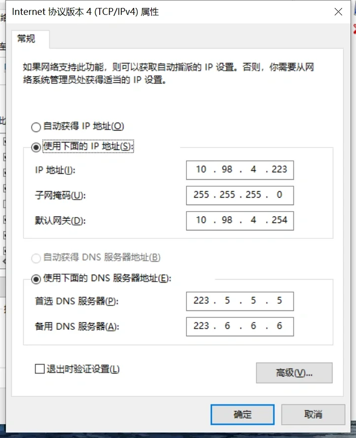 3. 选择Internet 协议版本 4 (TCP/IPv4),点击使用下面的DNS服务器地址