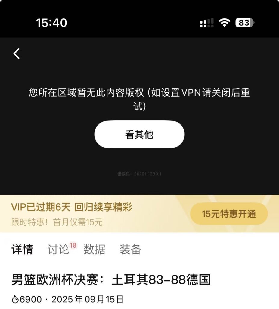 但是海外党用腾讯视频会显示“您所在区域暂无此内容版权”!