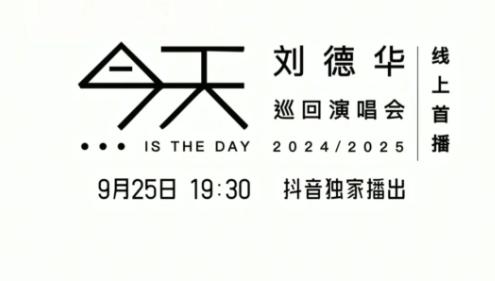025 年 9 月 25 日 19:30,刘德华 “今天…is the Day” 线上演唱会将在抖音独家首播。此次演唱会由茅台 1935 总冠名,免费向观众开放 。