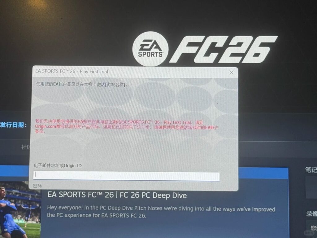 - 国外玩FC26可能出现的错误提示