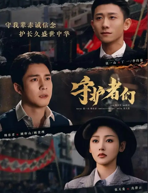 《守护者们》中,小人物丁一(张一山 饰)、情报员顾仰山(韩东君 饰)与剧团老板冼碧云(张天爱 饰)因共同的爱国之心而命运交织,在草蛇灰线的铺陈中,逐步展开一盘暗潮涌动、身份错位、真相层层揭开的悬疑棋局。三人因命运而结成秘密同盟,在潜伏敌营时既要防止身份暴露,又要化解重重危机。在一次次险象环生的较量中,他们以智慧与胆识逢凶化吉,坚定地守护了民族的信念之火