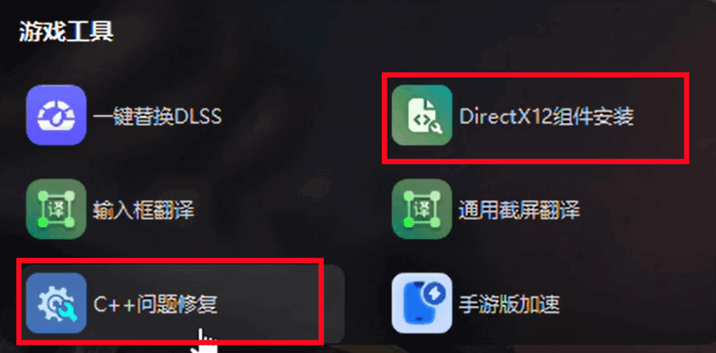 解决方法使用Sixfast里的游戏工具DX12组件修复和C++问题修复,如下图