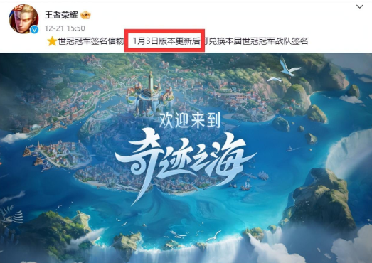 此外,正式服已在今日开启奇迹之海的版本活动,活动奖励就一个称号,但活动结束时间却很特别,将在1月2日22点结束,再结合之前的官方消息:1月3日有一次版本更新。所以,正式服很有可能是在1月3日开启S30赛季,而不是以往的周四大更新。