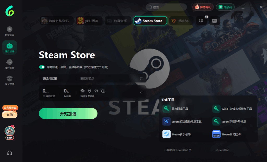 解决此类办法只用挂一个回国区的sixfast加速器就可以了,在sixfast的游戏库内直接搜steam商店加速就能解决问题