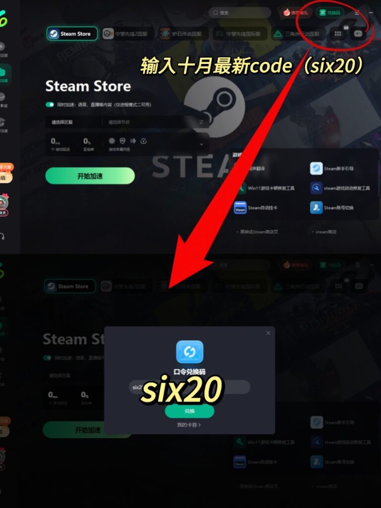 Sixfast应用下载注册后右上角找到兑换码,输入six20就能获得72小时使用时间,记得先兑换才能正常使用