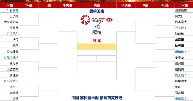 石宇奇、陈清晨/贾一凡、冯彦哲/黄东萍是赛会的卫冕冠军,本站赛事是凡尘组合国际比赛的最后一舞,凡尘将全力以赴,争取以一个高级别赛事冠军卫冕,告别羽坛;李诗沣、翁泓阳将全力冲击世界羽联总决赛的资格。