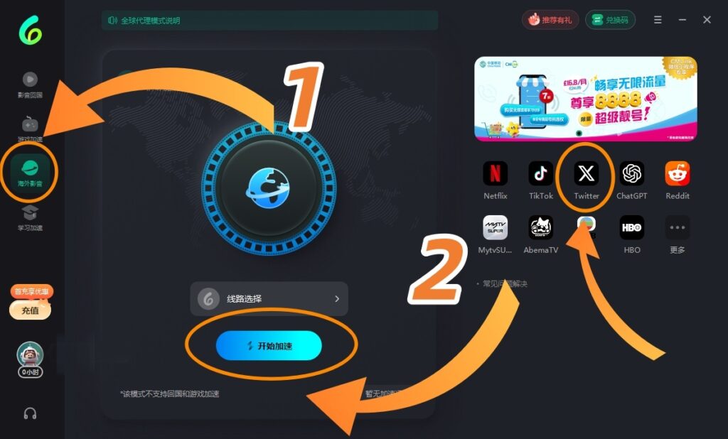 就可以直接进入X了,Sixfast还有多种模式可以选择,游戏加速、回国影音,解决你在海外的烦恼!