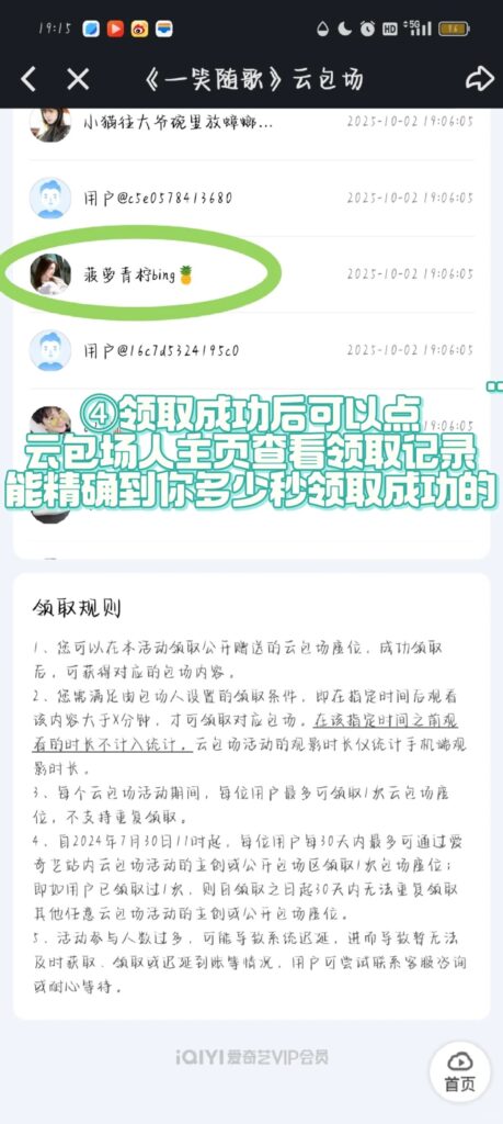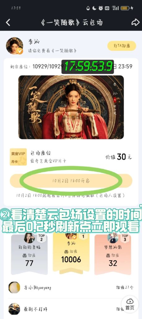 抢云包场需要提前进去满足观看时长,才能获得月卡奖励。