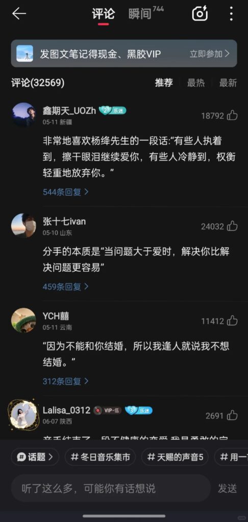 与其他音乐平台相比,网易云音乐最突出的优势在于其强大的社区属性。“乐评区”是社区生态的核心,每首歌曲下方都聚集了大量用户分享的故事、感悟和情感共鸣,形成了独特的“云村”文化。许多经典歌曲的评论数突破百万,如周杰伦《晴天》的评论量超200万,这些评论不仅是用户情感交流的载体,更成为平台的“情感记忆库”。此外,平台还推出“云村”广场、Mlog(音乐日志)、动态分享等功能,用户可通过图文、视频、音频等形式分享音乐体验,构建起以音乐为纽带的社交圈层。