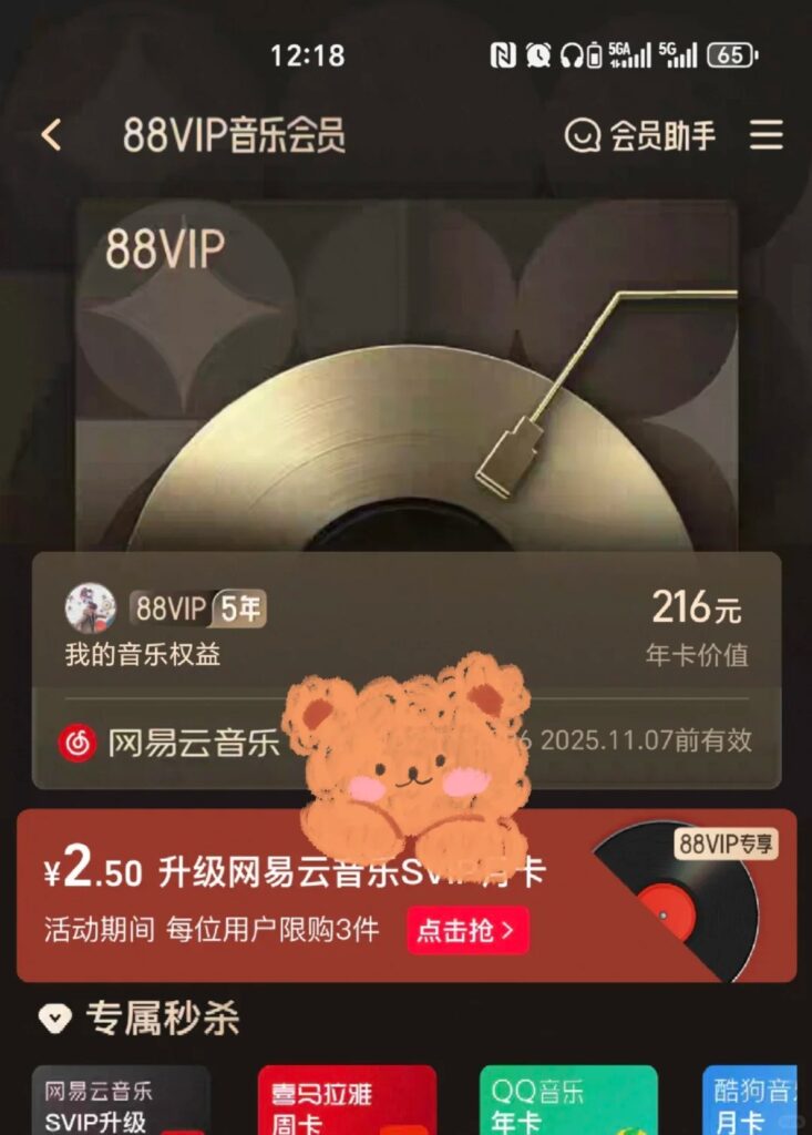 - 会员订阅服务:包括黑胶VIP会员、豪华绿钻等,会员可享受无损音质、付费曲库、免广告等特权,是平台最核心的营收来源,占总营收的45%左右。