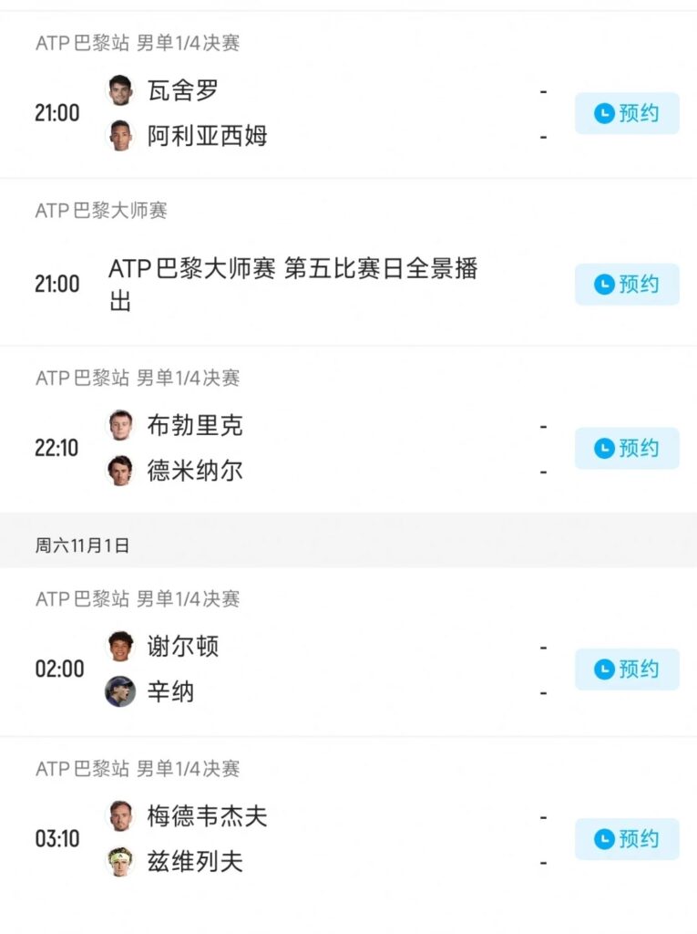赛事于10月27日开启正赛阶段,11月2日迎来收官日——双打决赛定于当日12:30举行,单打决赛则在15:00后开赛。赛事抽签仪式已于10月24日18:30(当地时间)完成,球迷可通过ATP官网或官方社交媒体平台查询完整签表。