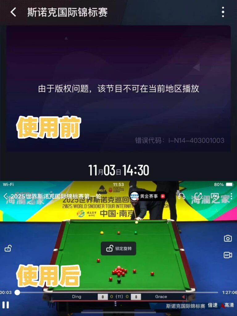对于喜欢斯诺克的球迷来说,2025斯诺克国锦赛绝对是不容错过的年度盛宴!本届比赛云集了世界顶级选手,将在10月20日至10月27日正式开打。国内观众可以通过咪咕视频、央视频、五星体育等平台观看中文解说的赛事直播,但不少海外用户却发现:在国外打开咪咕视频提示“当前内容暂不支持您所在地区播放”。